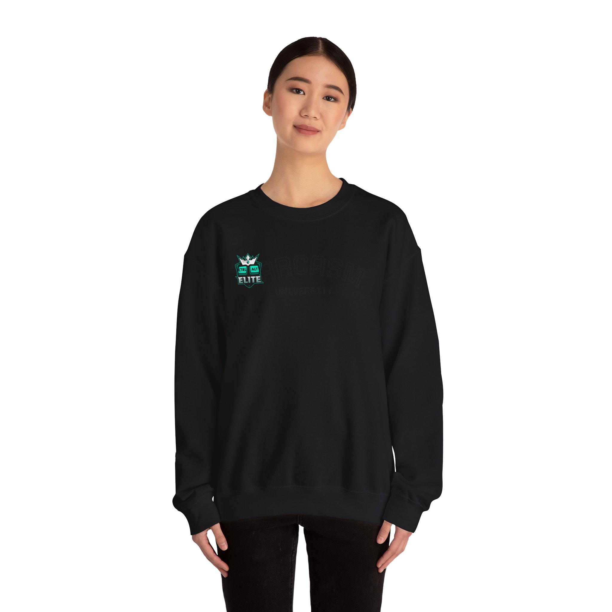 A soft, midweight crewneck sweatshirt designed for gamers who wear their frustrations with pride. The black, tubular-knit sweatshirt features bold turquoise back lettering that reads an irreverent rallying cry and a small embroidered emblem at the chest—subtle on the front, loud on the back. The classic fit and ribbed collar keep the silhouette clean, while durable double-needle stitching and a tear-away label keep comfort long-lasting. Wear it during late-night raids, patch-day vent sessions, or while swapping stories with your raid group—this sweatshirt feels like the same dependable companion you bring to every run.